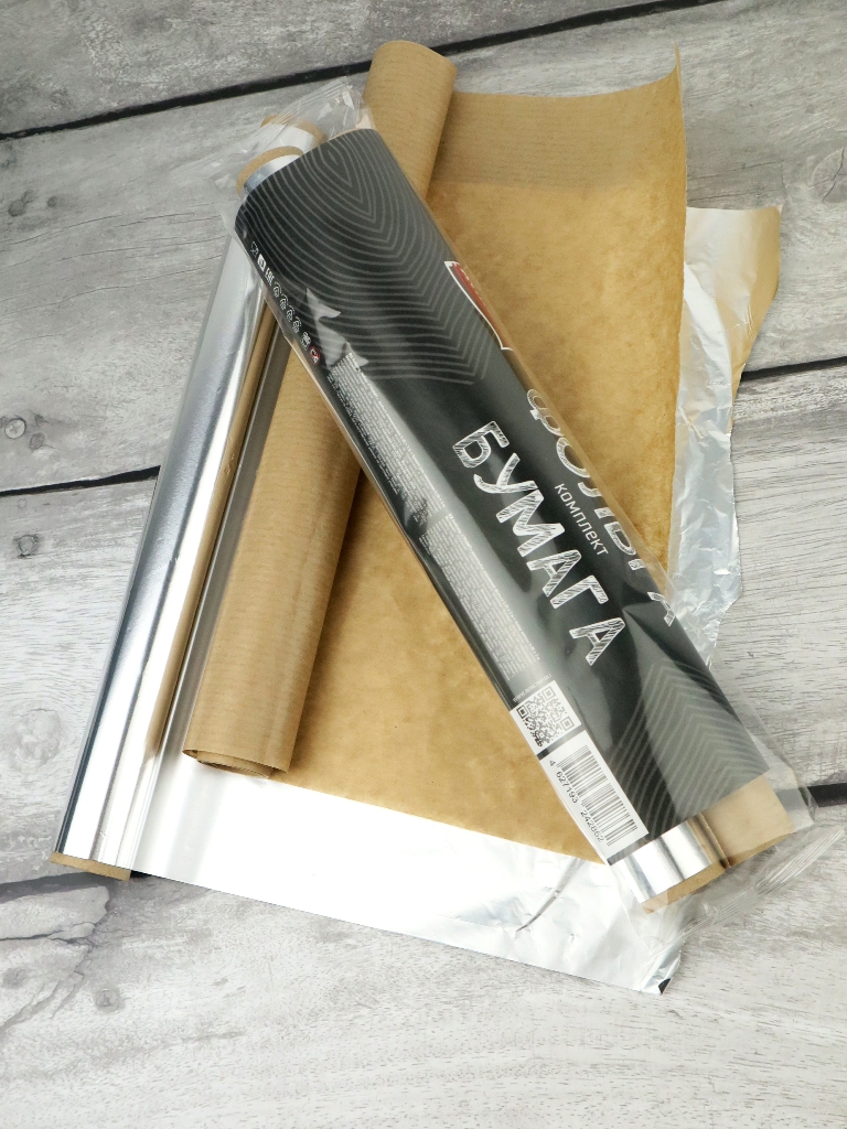 Практичность. Фольга надёжно удерживает тепло и защищает от влаги, а бумага обеспечивает равномерное пропекание.