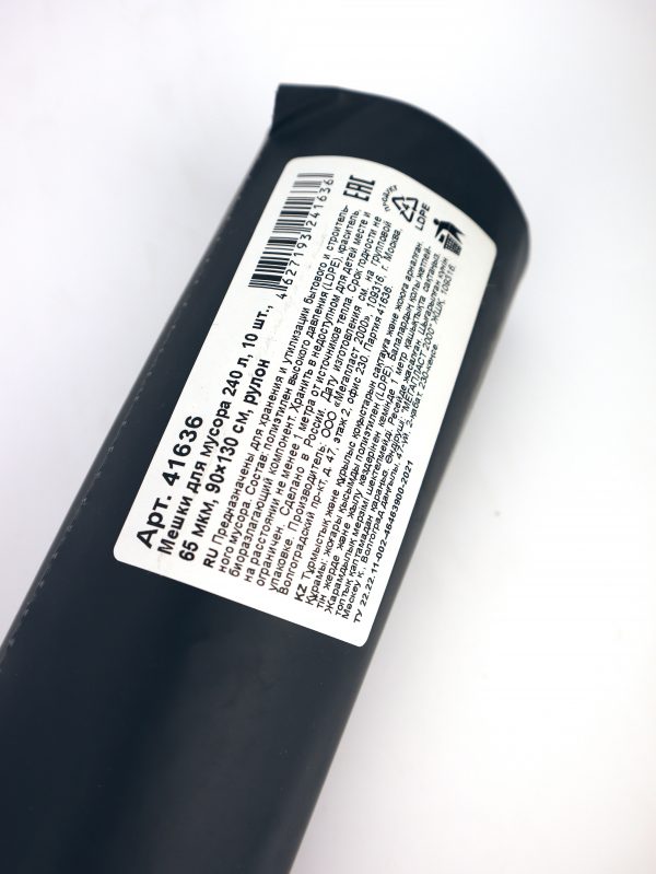 Наклейка содержит всю необходимую информацию (размер, толщину, штрих-код) и, при желании, может поместиться на полке строительных и хозяйственных магазинов. Изготовлены из смешанного полиэтилена (ПНД+ПВД), что существенно улучшает качественные характеристики полиэтилена. Изготовлены с применением биоразлагаемой технологии.