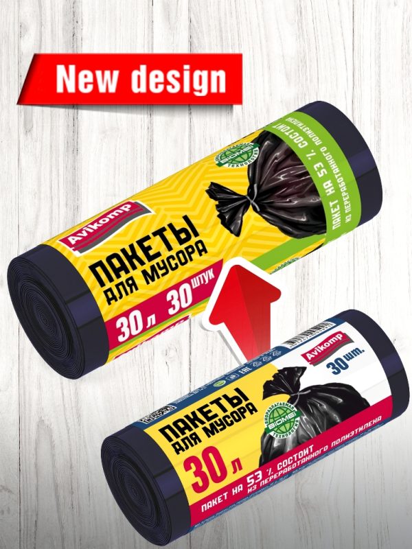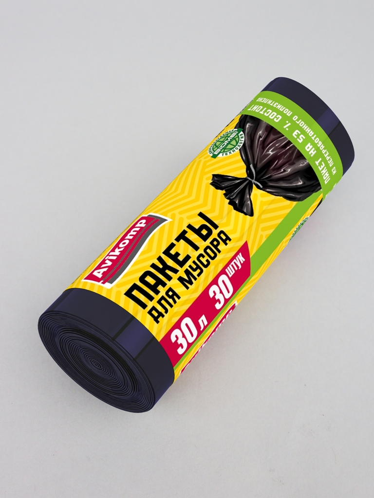 Пакеты изготовлены из смешанного полиэтилена: ПВД (повышает устойчивость к проколам) + ПНД (выдерживает больший вес). На 53 % состоят из переработанного полиэтилена.