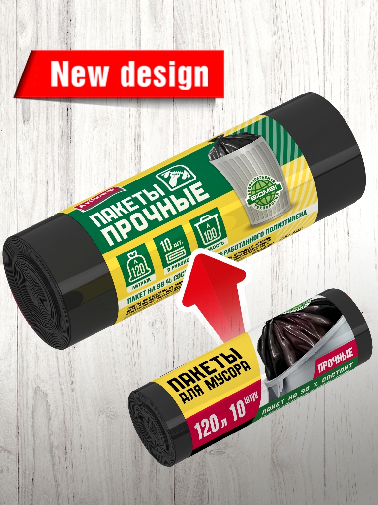 Пакеты на 58 % состоят из переработанного полиэтилена.