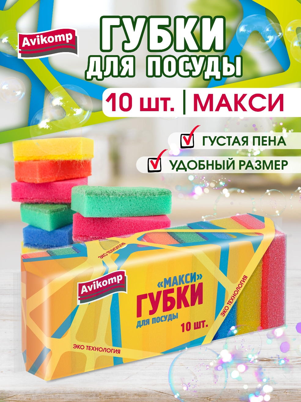 Губки для мытья посуды идеально справляются с жиром, грязью и пригоревшей пищей. Губки подходят и для кухонных поверхностей, бережно очищая и не царапая.