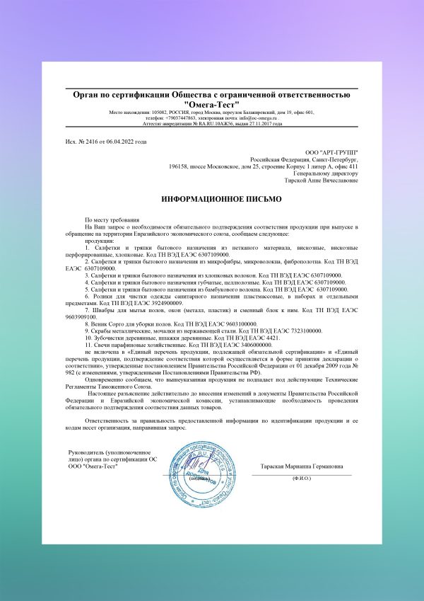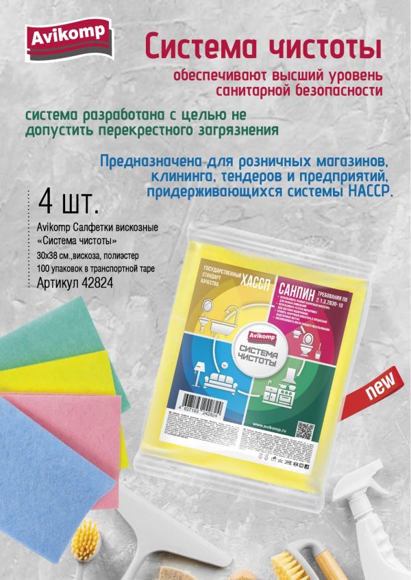 Салфетки разработаны в строгом соответствии с принципами СанПиН 2.1.3.2630-10, что гарантирует высший уровень санитарной безопасности при их использовании. Предназначены для эффективной уборки в самых разных помещениях, обеспечивая чистоту и гигиеничность.