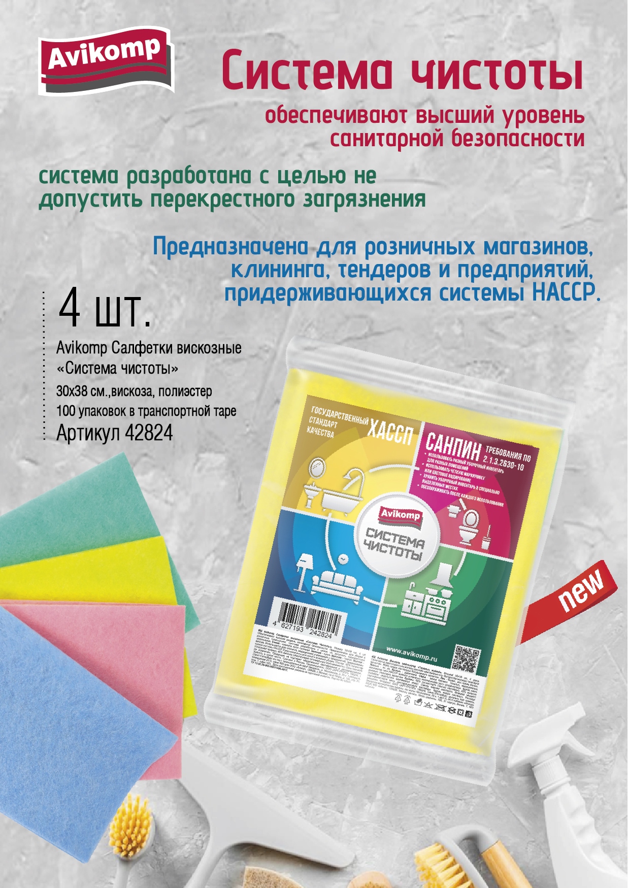 Области применения: салфетки идеально подходят для использования в клининговых компаниях, медицинских учреждениях и на предприятиях, придерживающихся системы HACCP. Они обеспечивают соответствие высоким стандартам чистоты и гигиены, что особенно важно в условиях повышенных требований к санитарной безопасности.