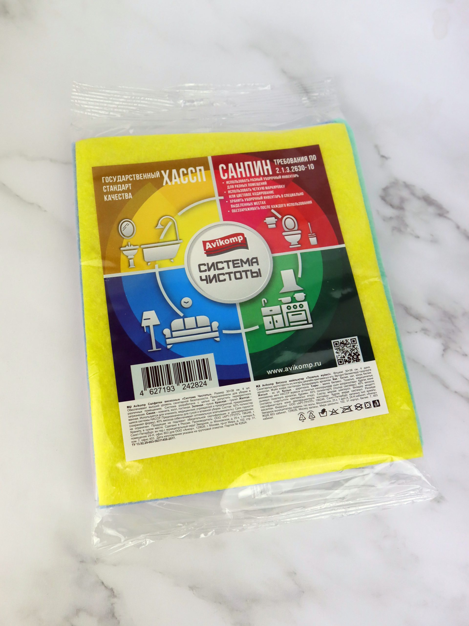 Преимущества системы цветовой кодировки: уникальная система цветовой кодировки салфеток разработана с целью предотвращения перекрестного загрязнения и оптимизации процесса уборки. Каждому цвету соответствует определенная зона: